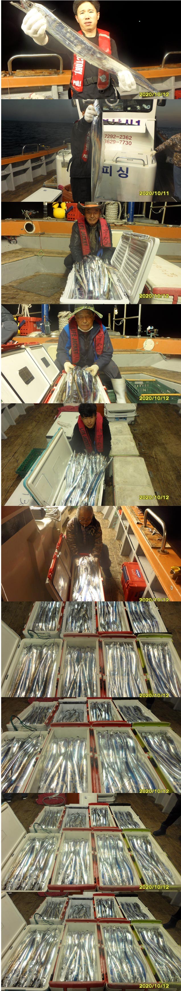 10월 12일 여수대박호 백도권씨알좋은갈치 조황입니다.